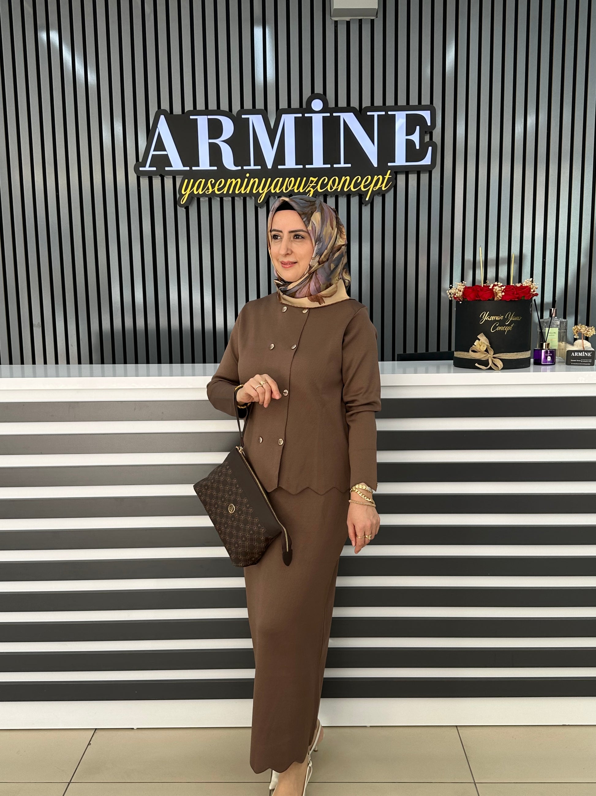 ● Üst tunik ceket görünümlü ve çift düğme detaylı, tunik ucunda, etek ucunda ve kollarında zikzak model sayesinde havalı bir takım