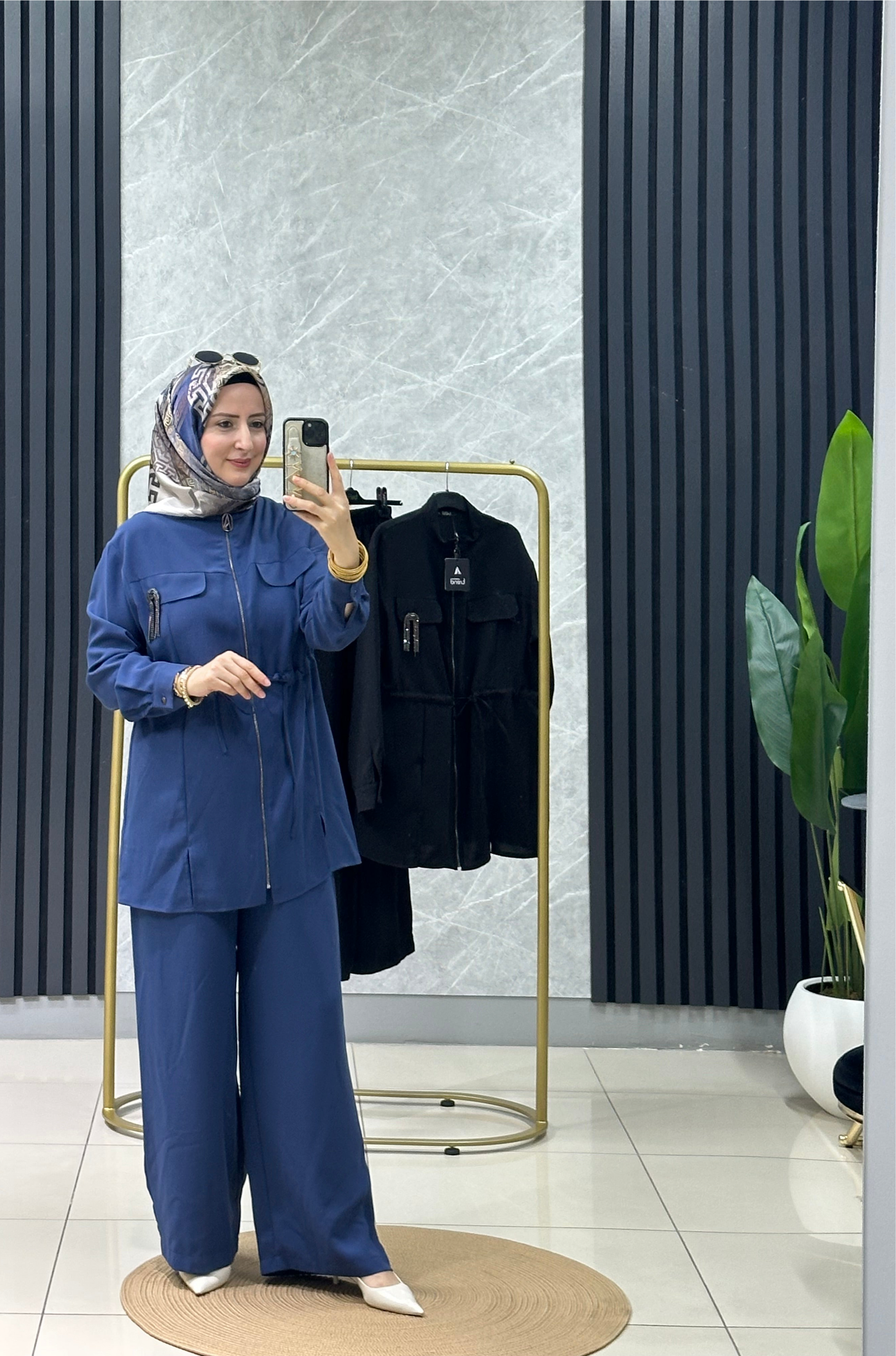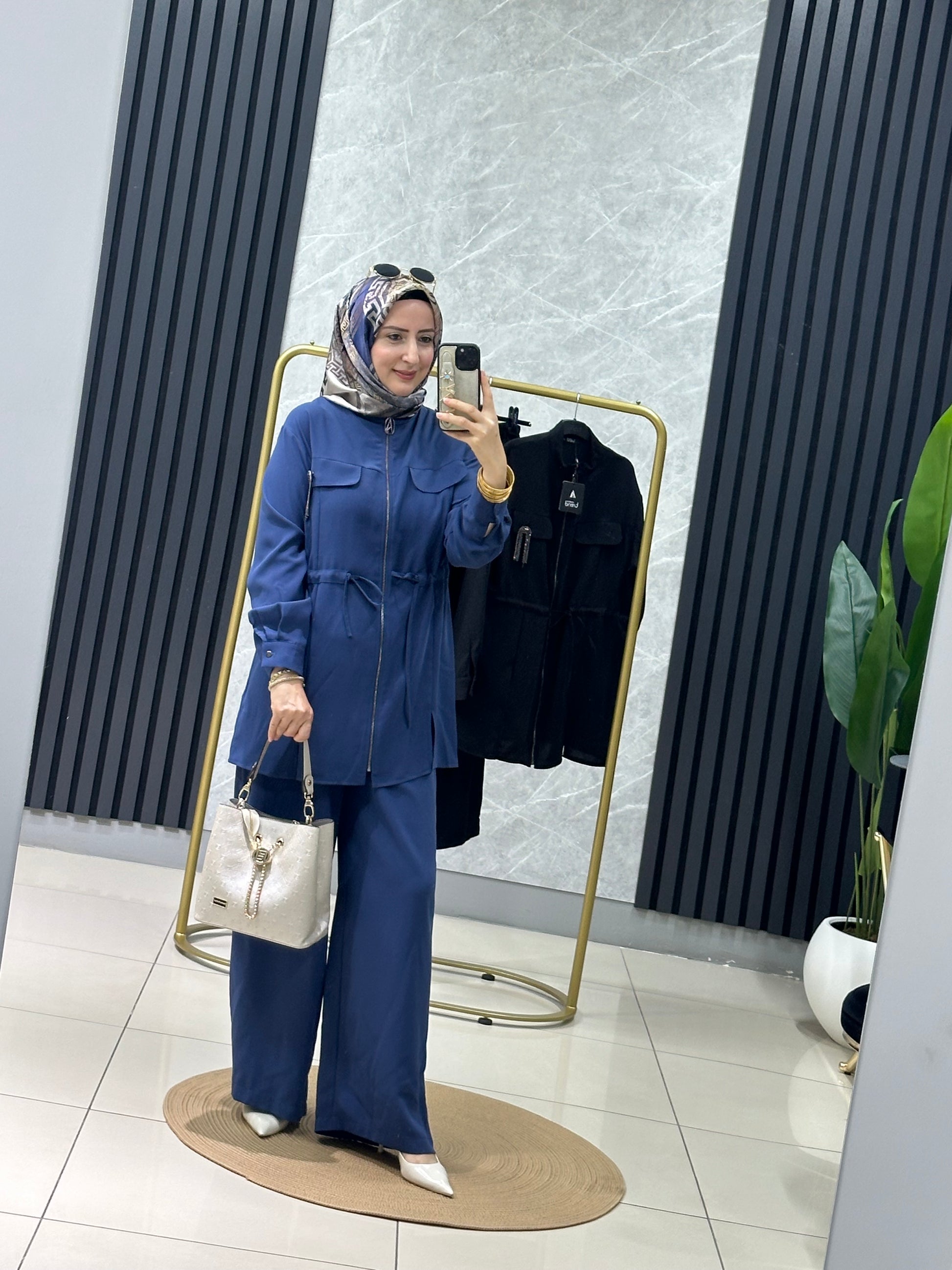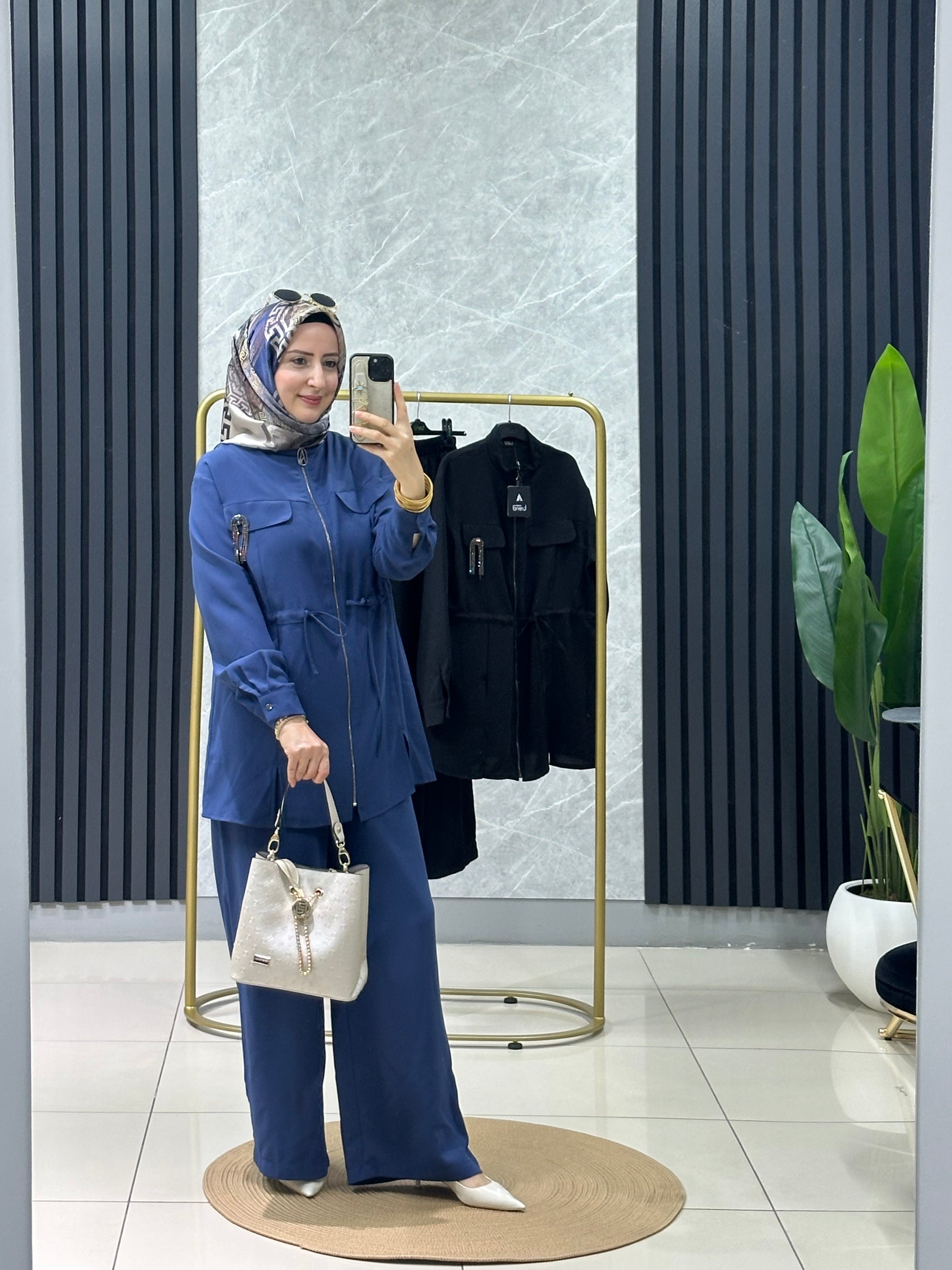 Pantolon beli arkadan lastikli, yandan cepli takım