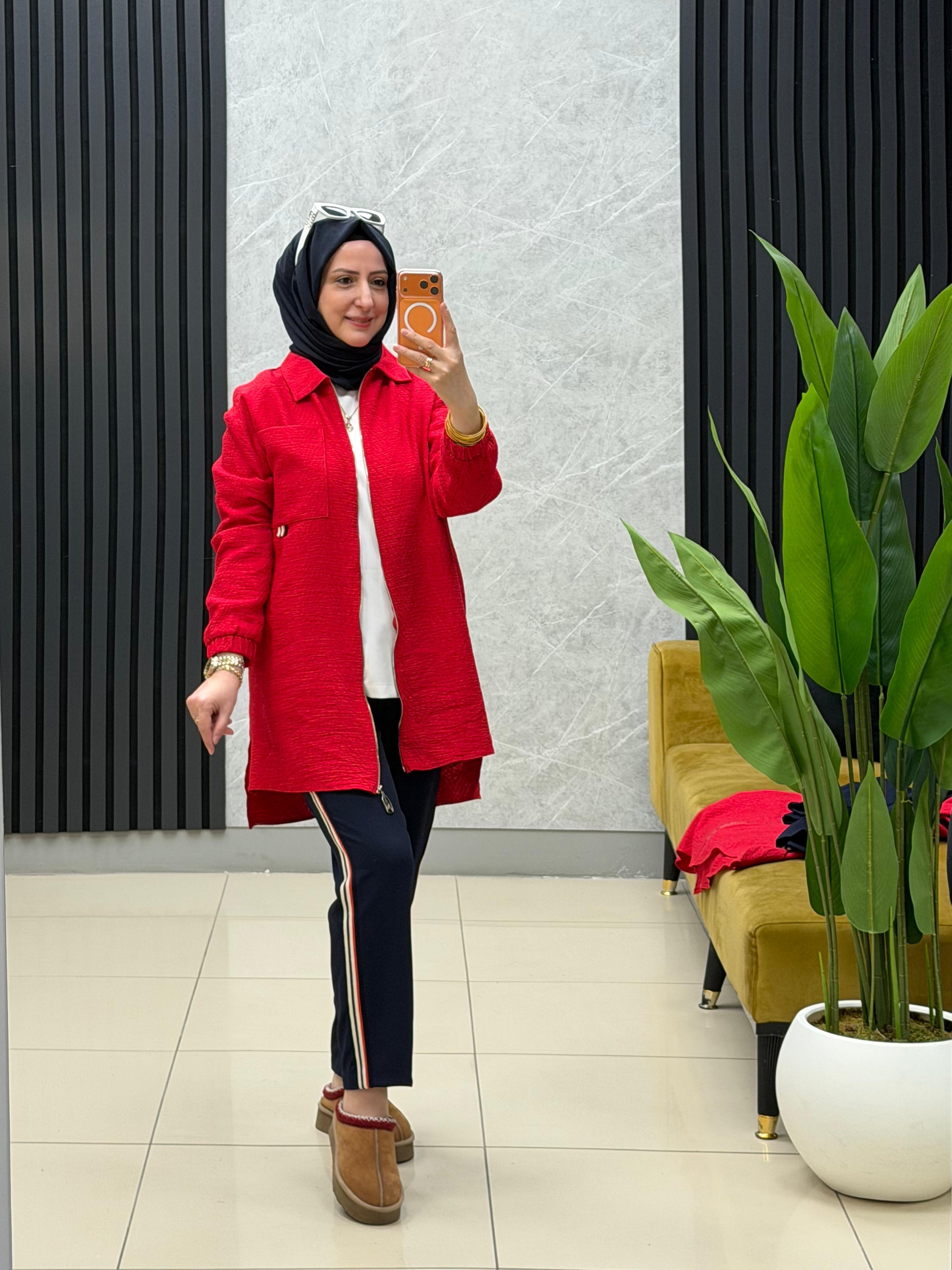 Armine trend Cepli fermuarlı gofre kumaş tunik pantolonlu ikili takım 26YT605