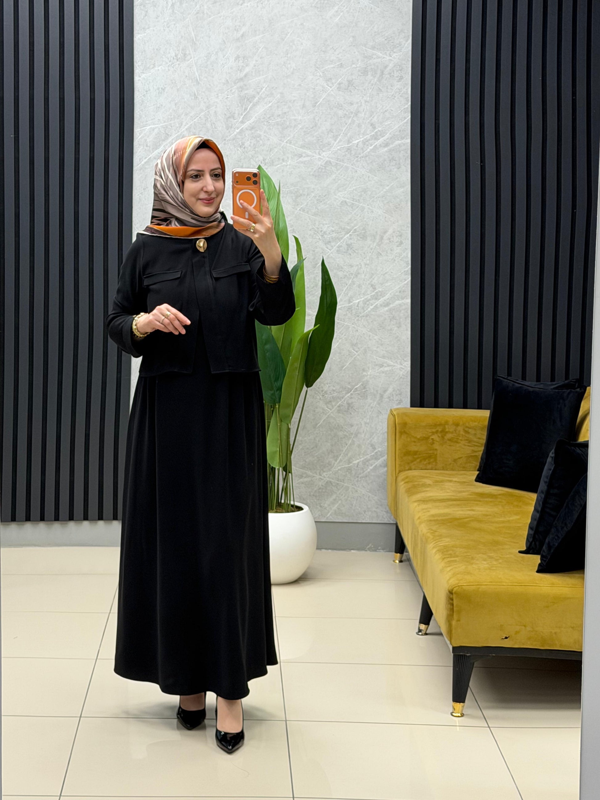 Elbise içi sıfır kollu üzerindeki ceket çıtçıtlıdir.