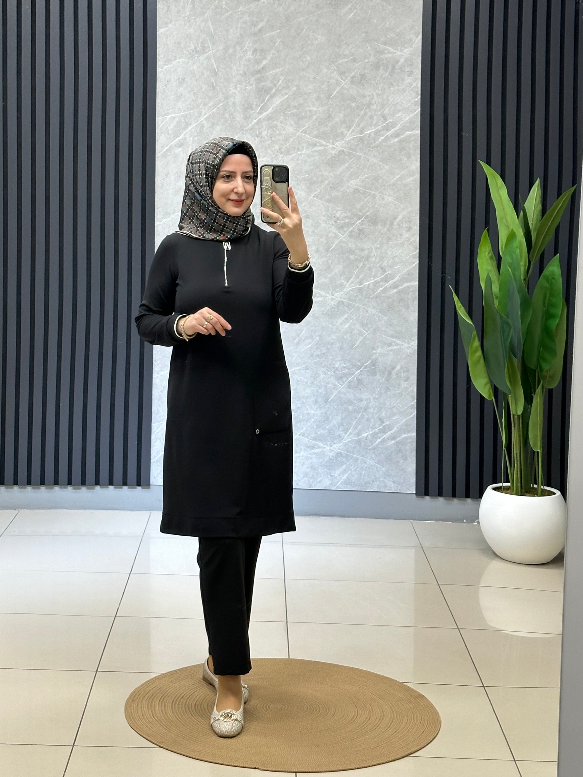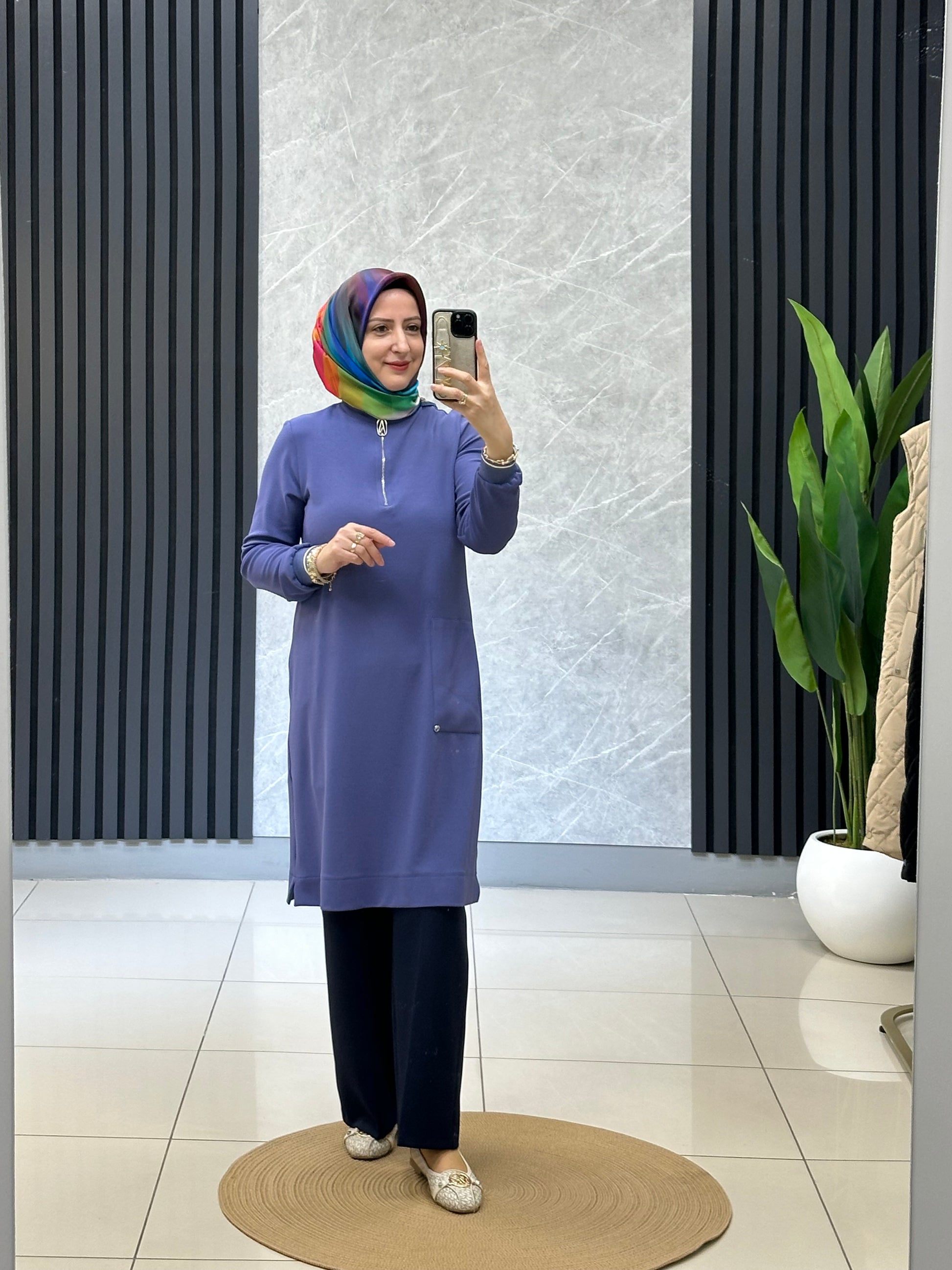 Armine Markamiza ait gogusten fermuarlı tek cepli fitilli tunik