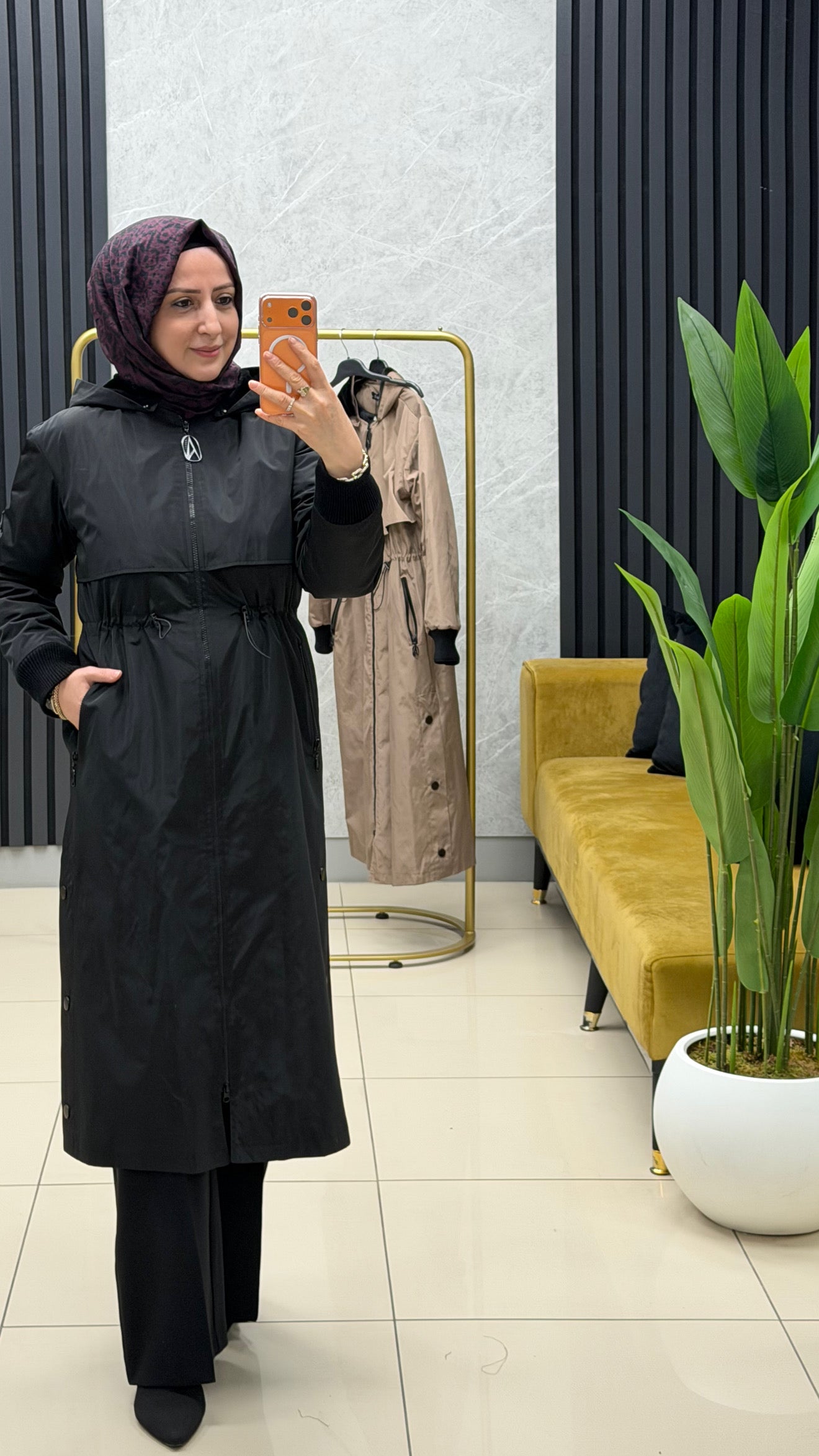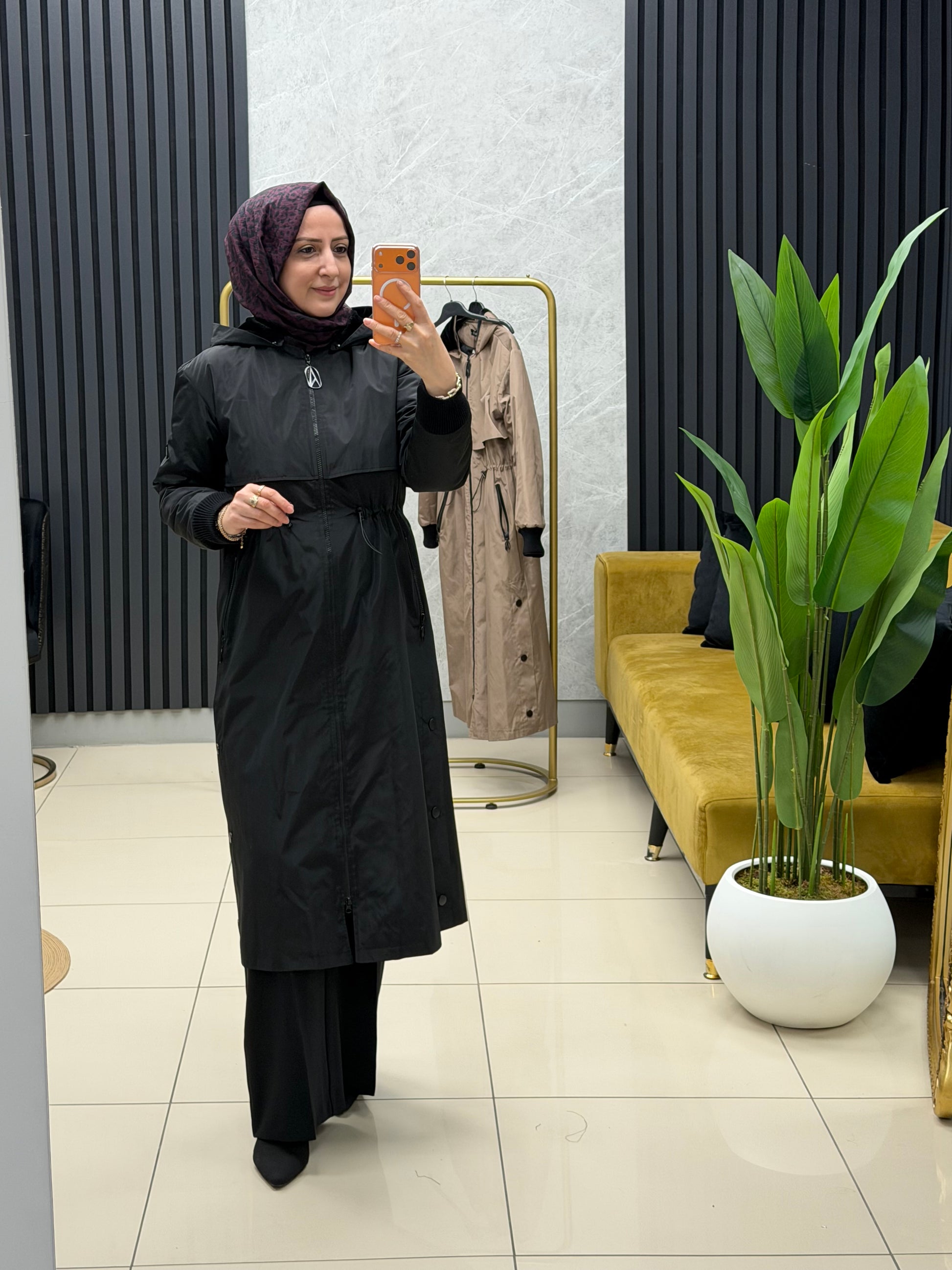 Çıkarılabilir kapüşonlu, bedenden cepli ve beli büzgülü