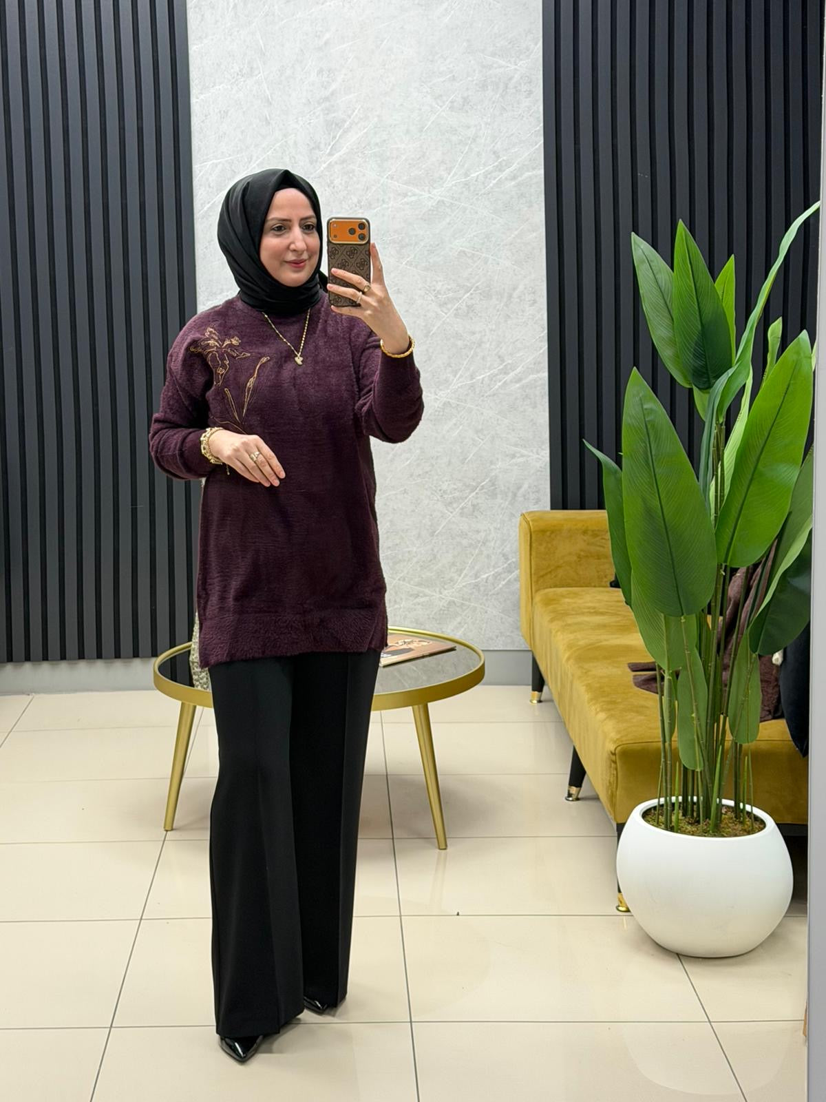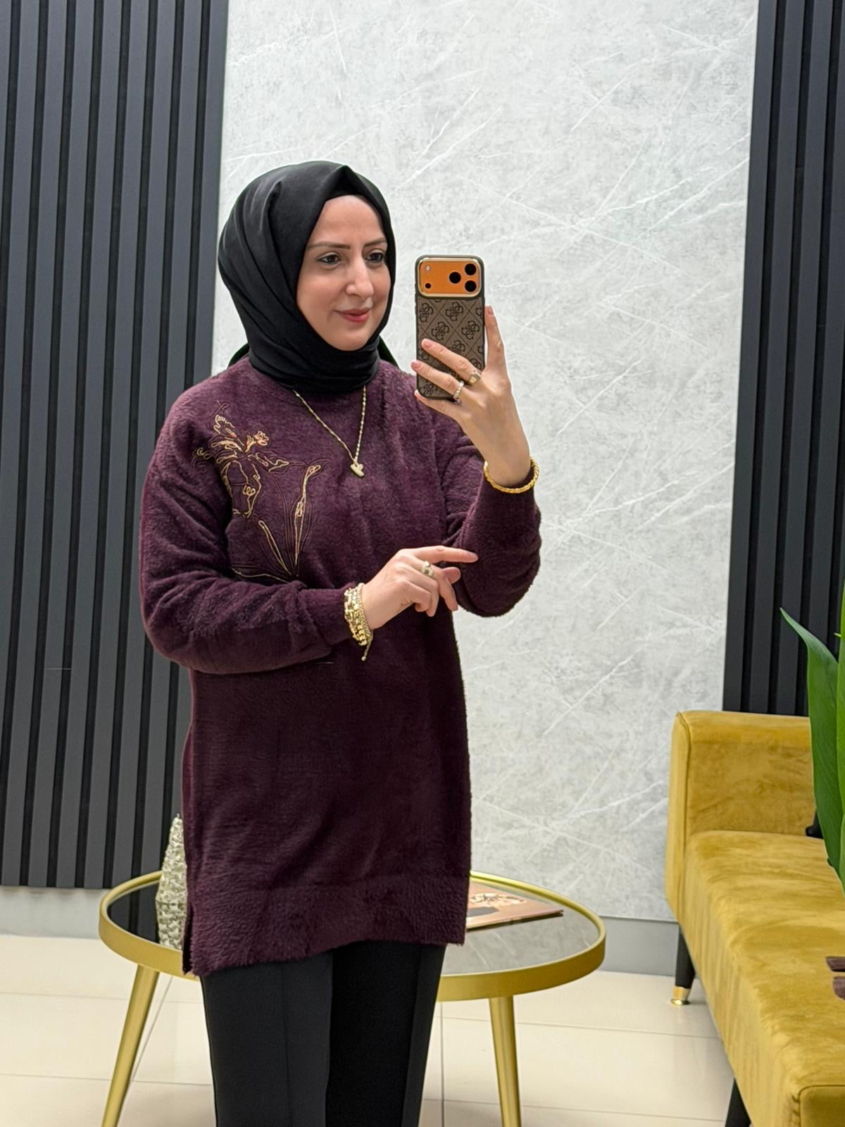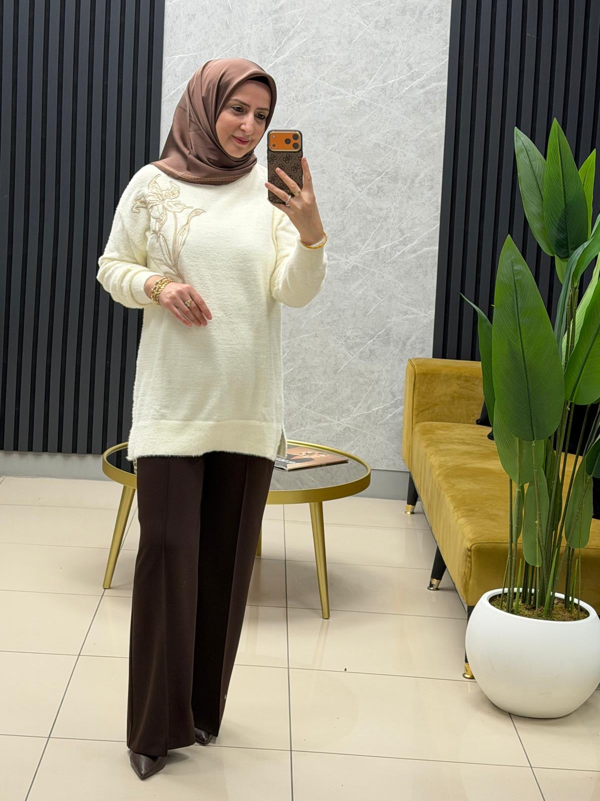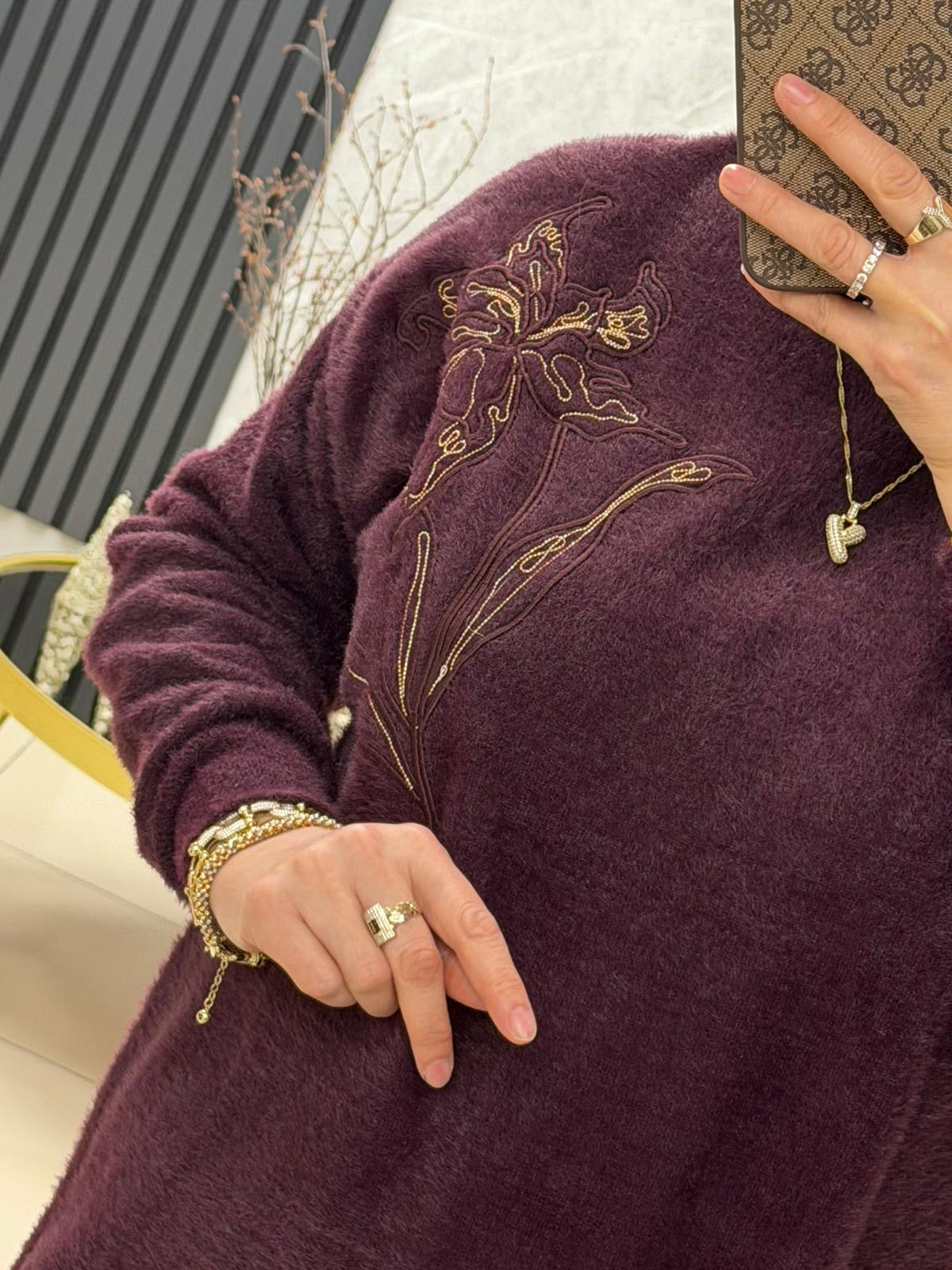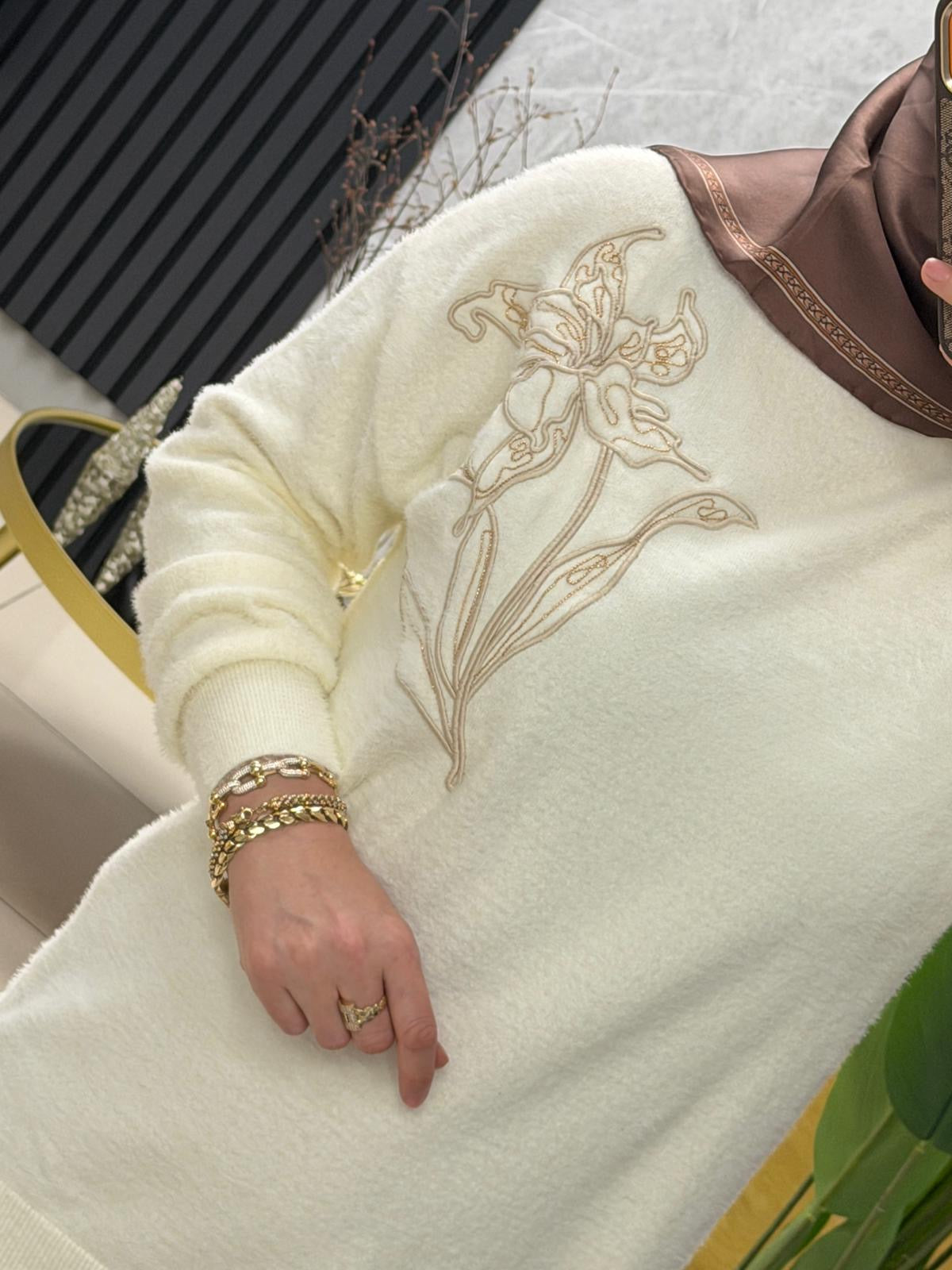 Göğsü cicek işlemeli angora kazak 140562