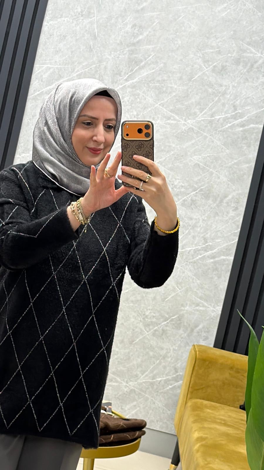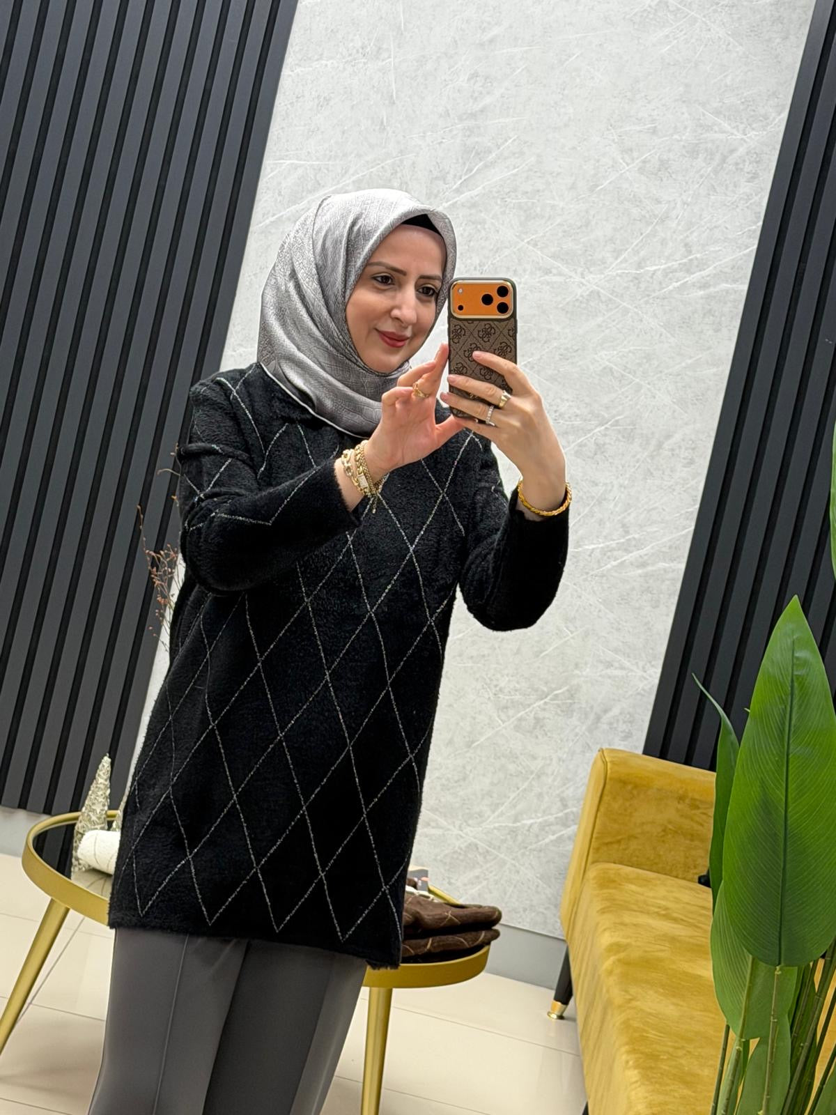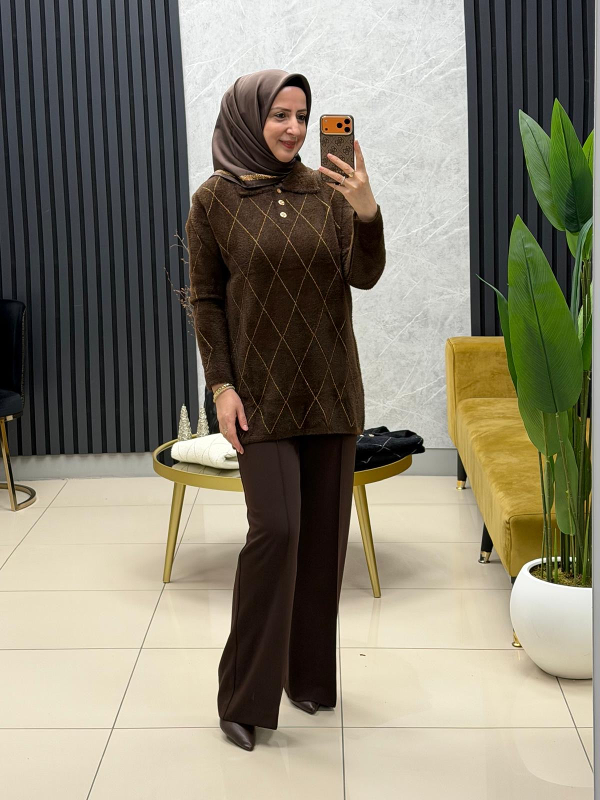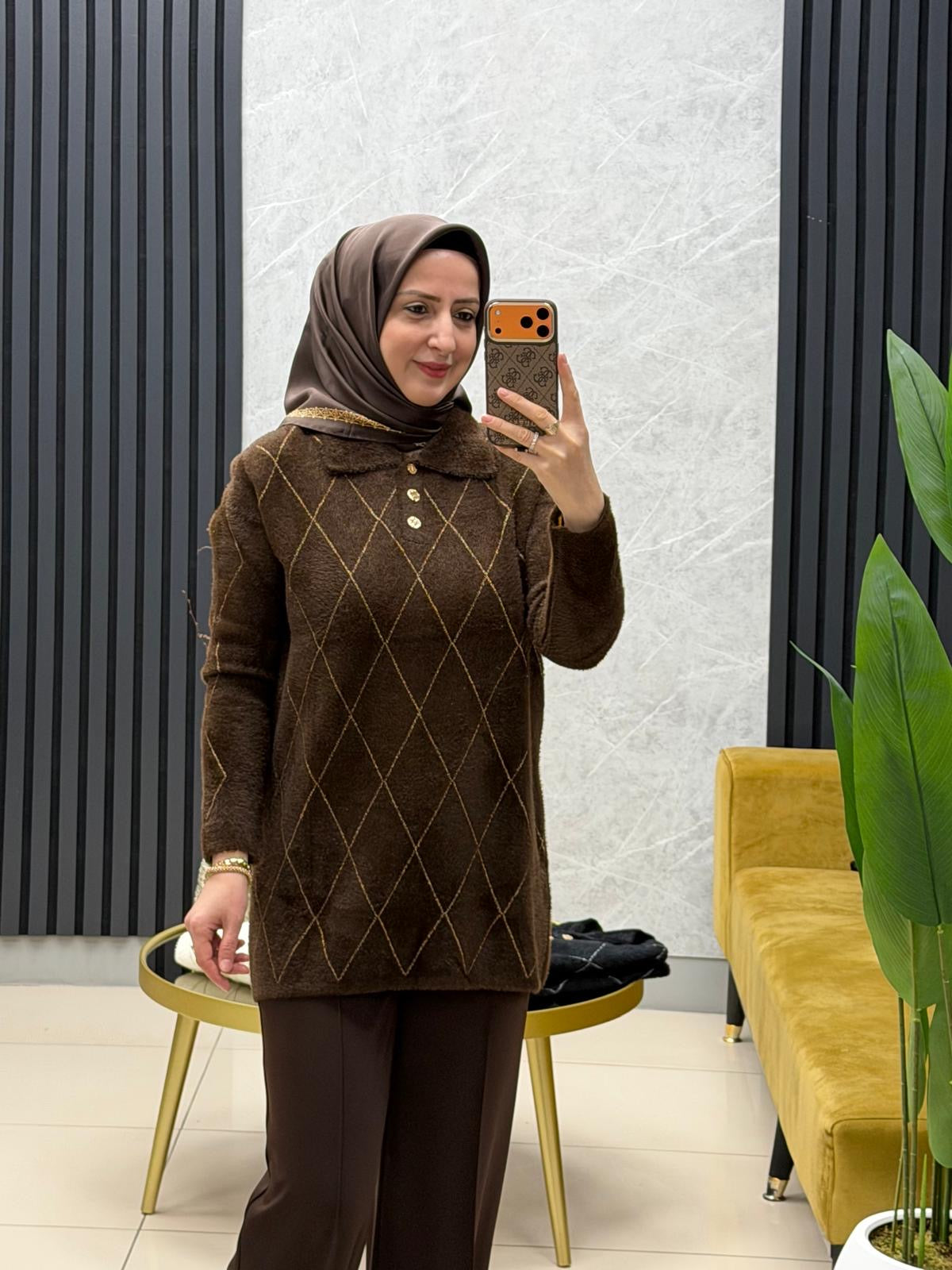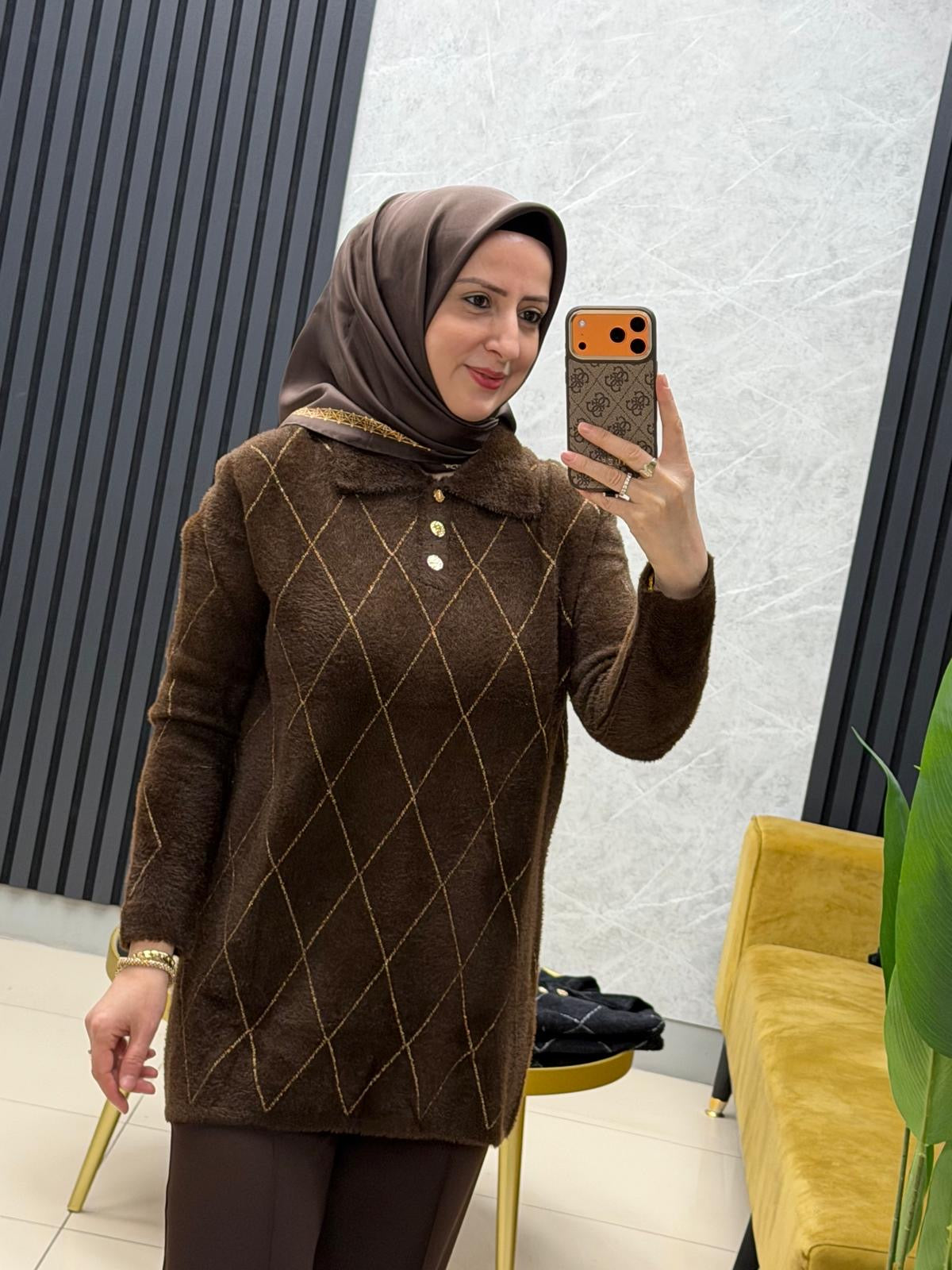Nefise 150561 angora baklava desen gild düğmeli yakalı kazak