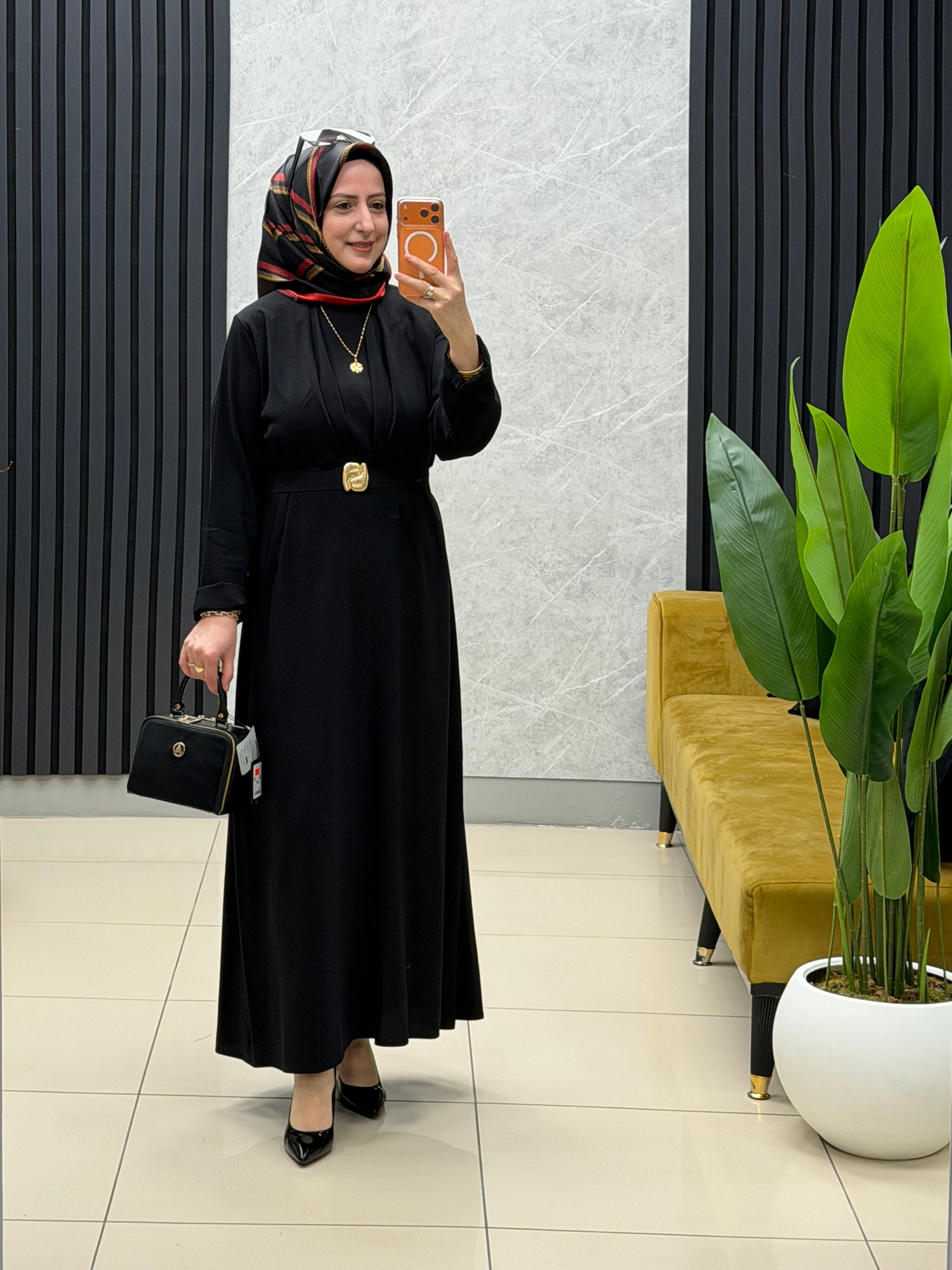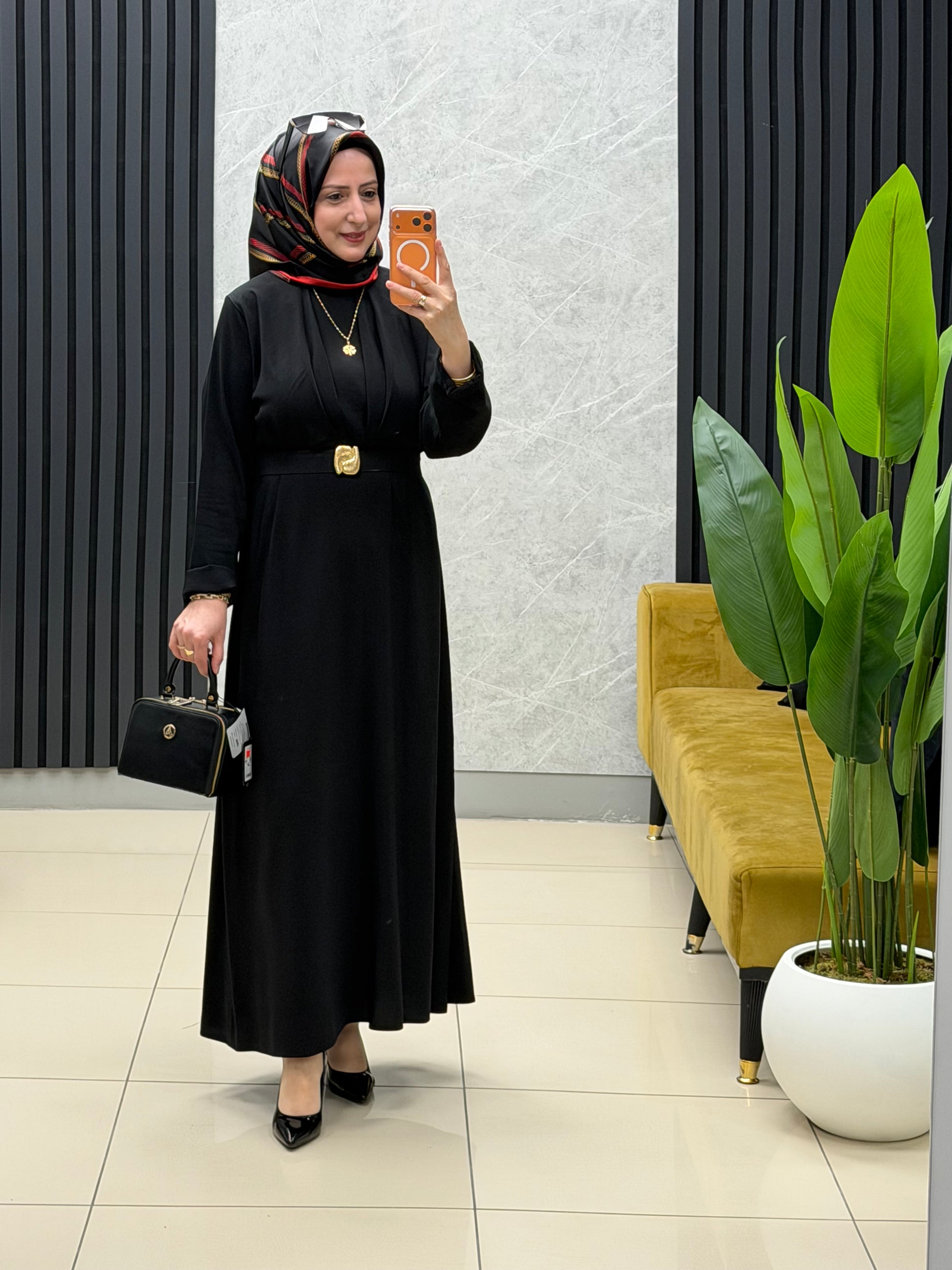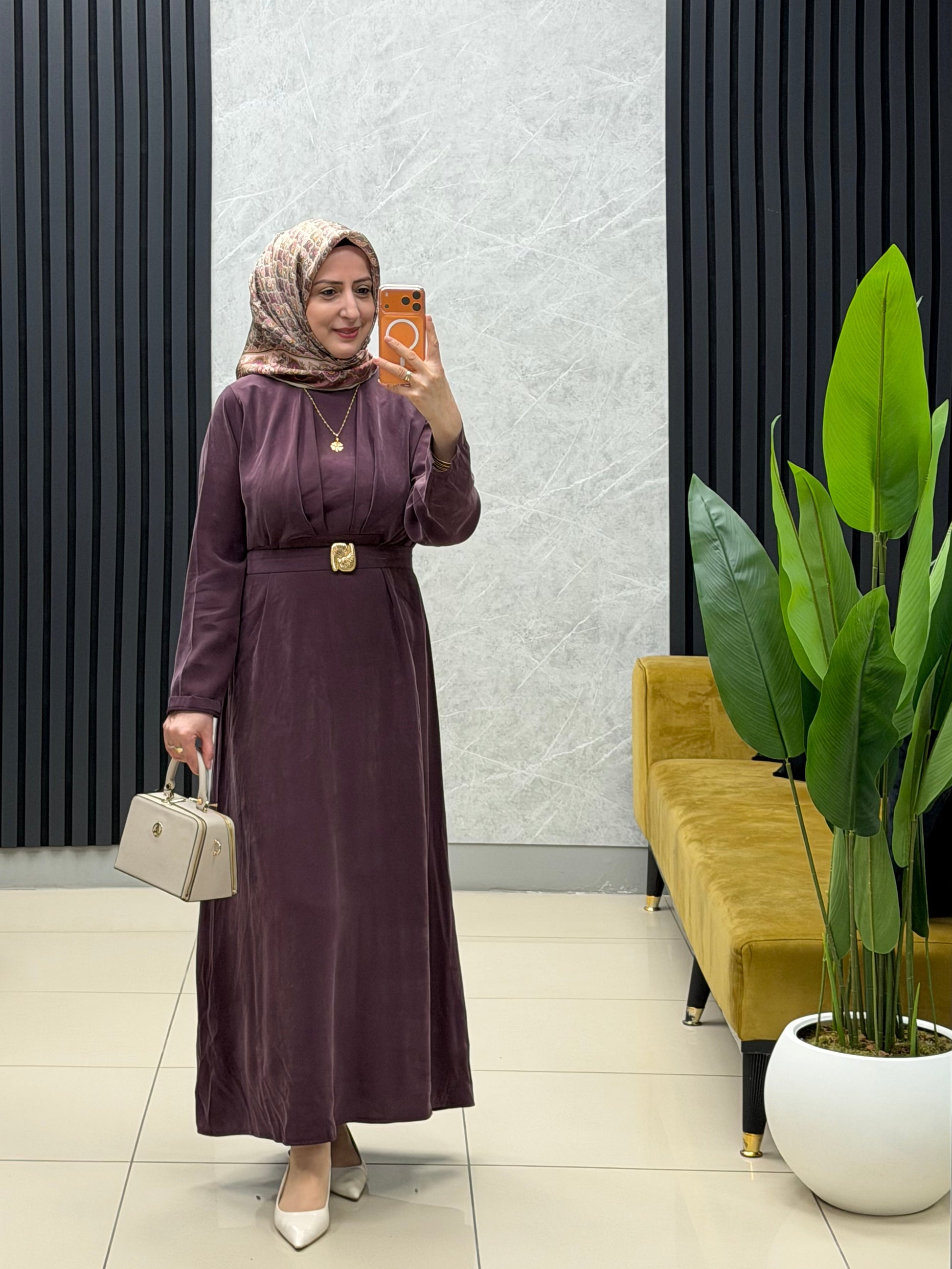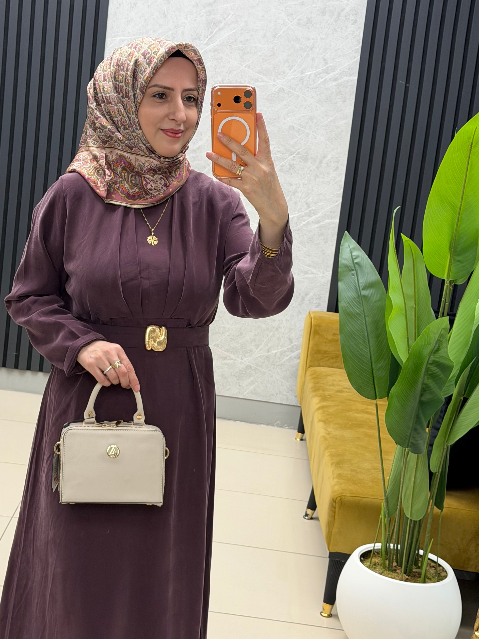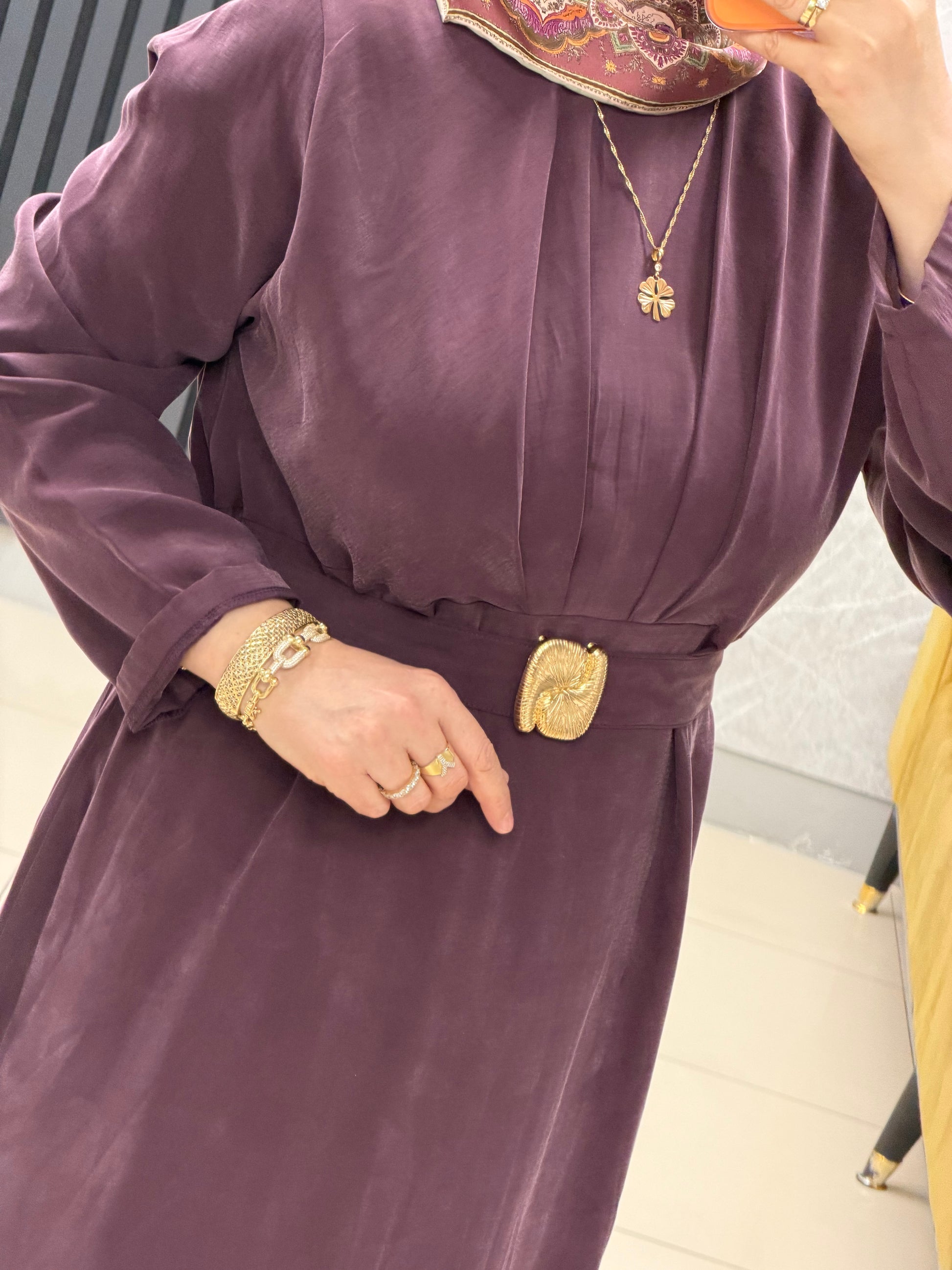 Noşhe 4675 Göğüse drapeli kemerli kupra elbise