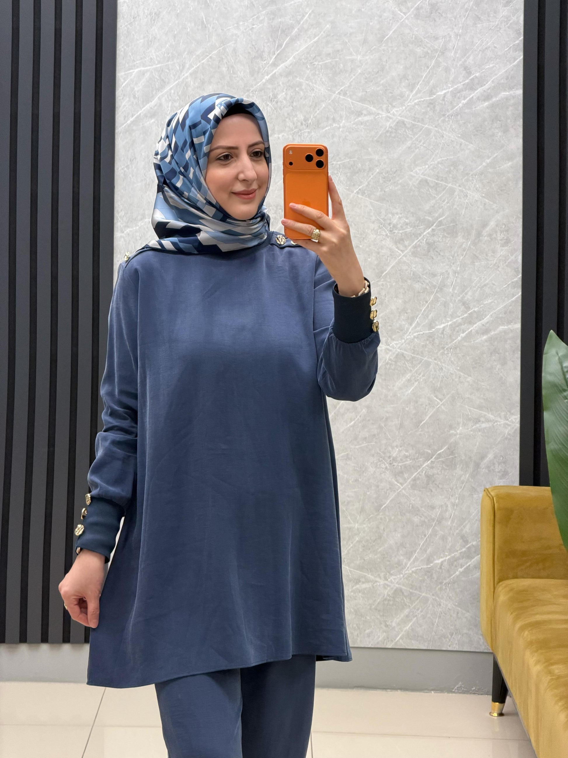 Noshe omzu gold düğmeli ribanali kupra tunik 4653