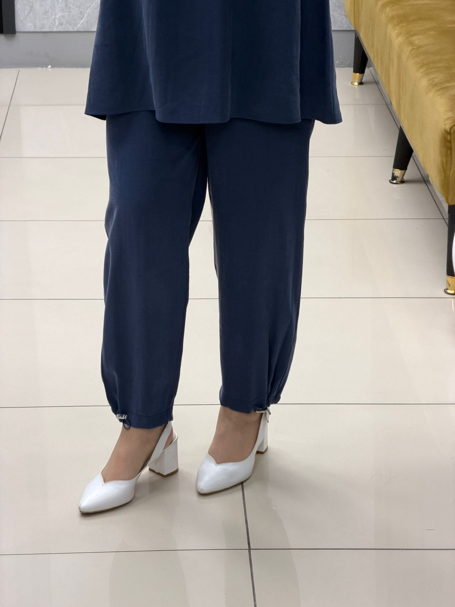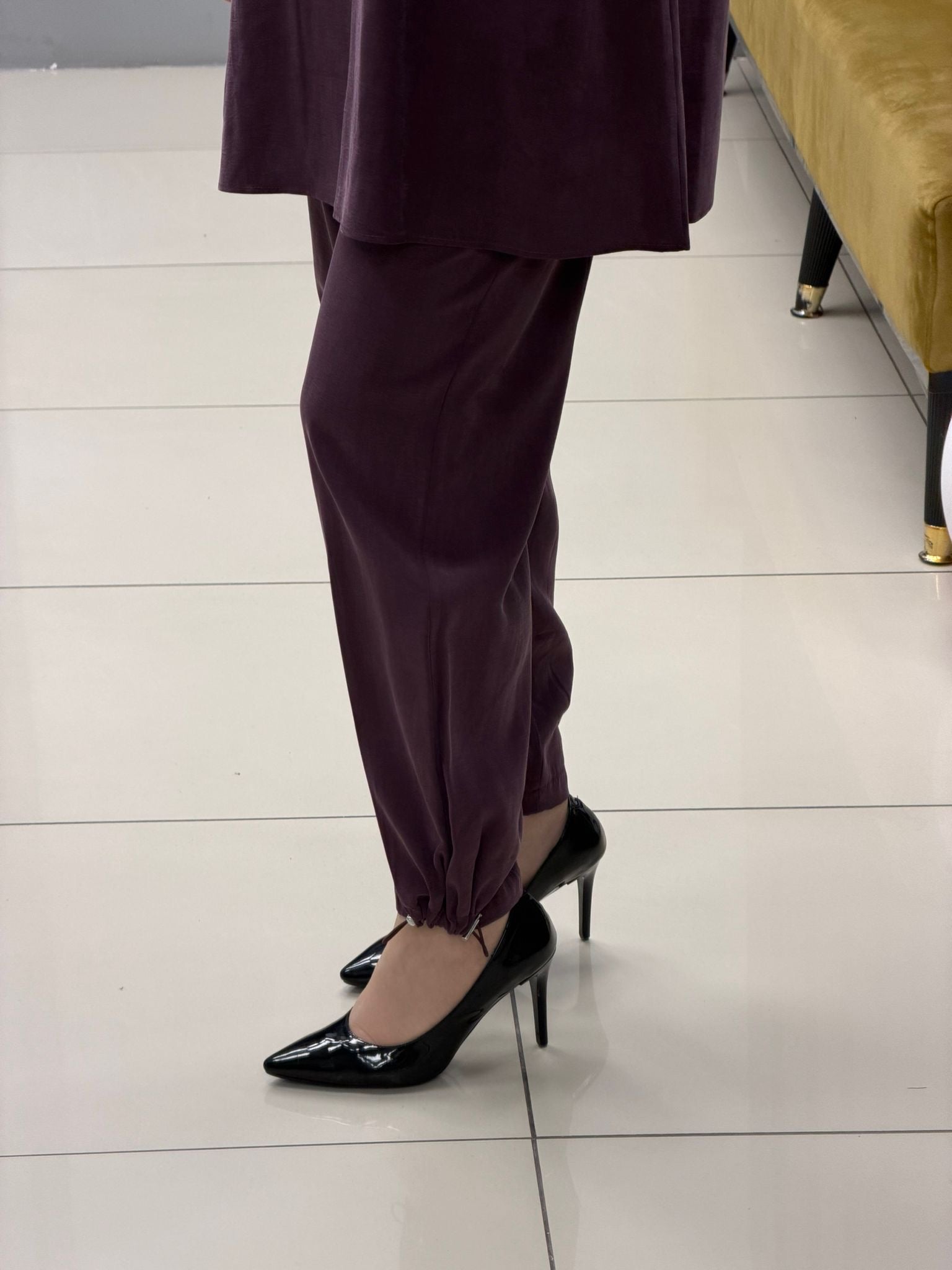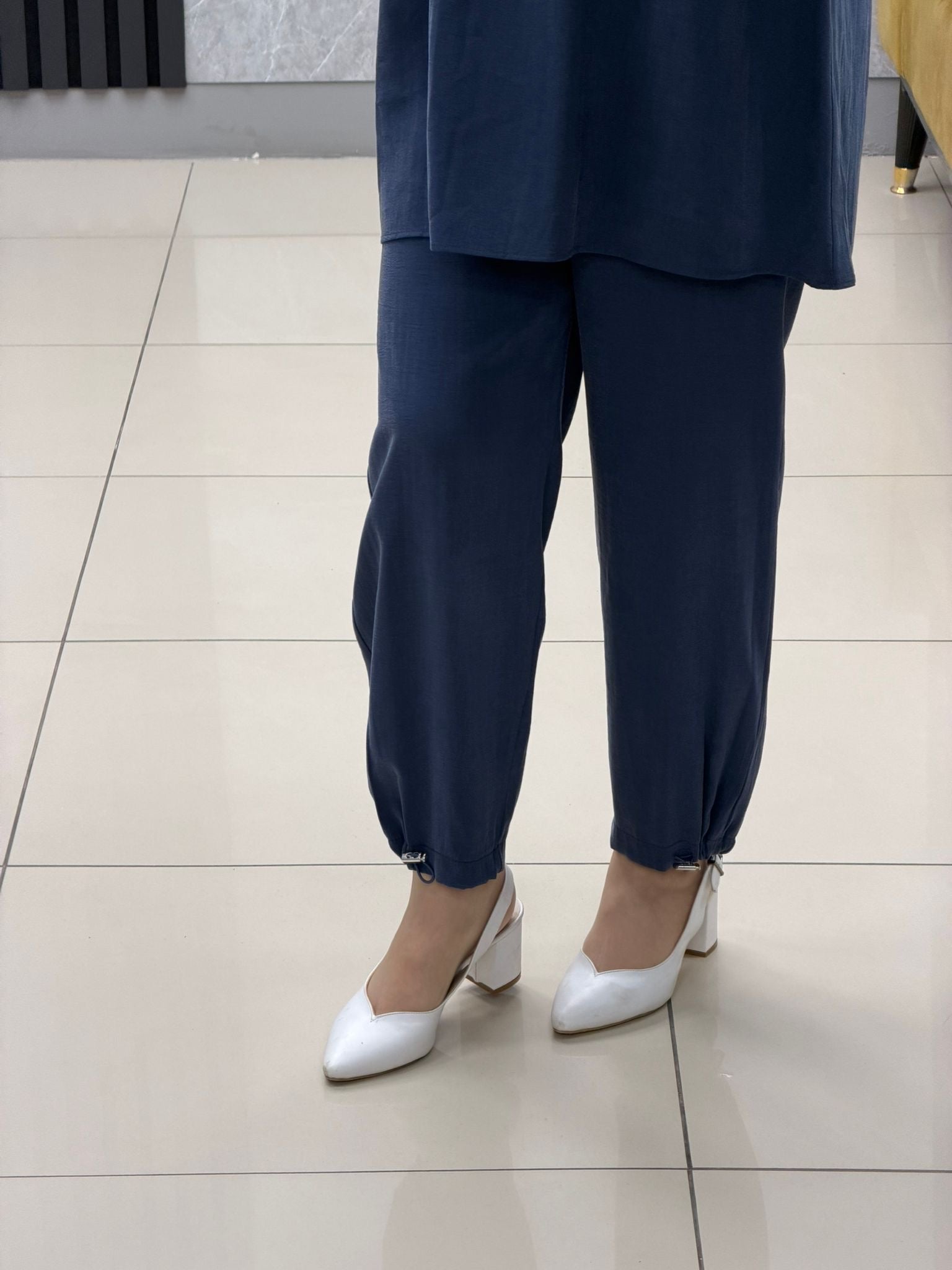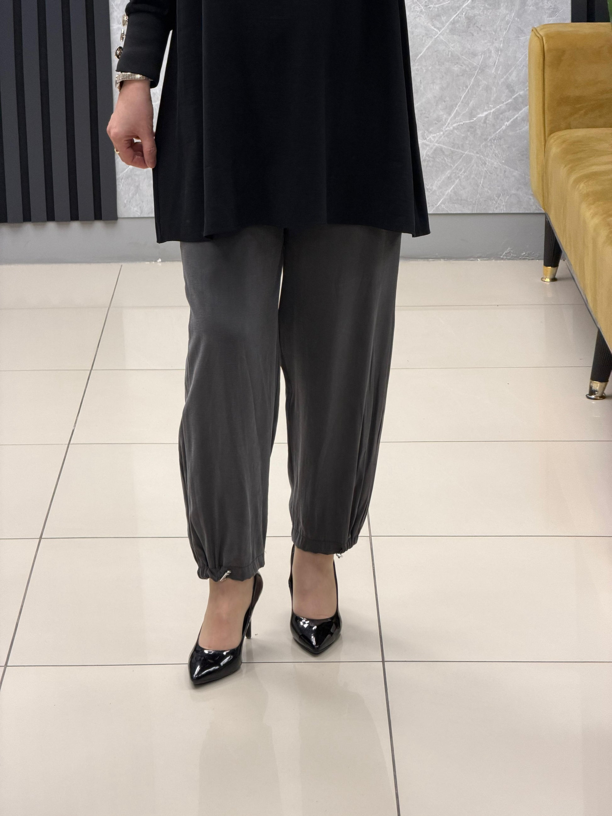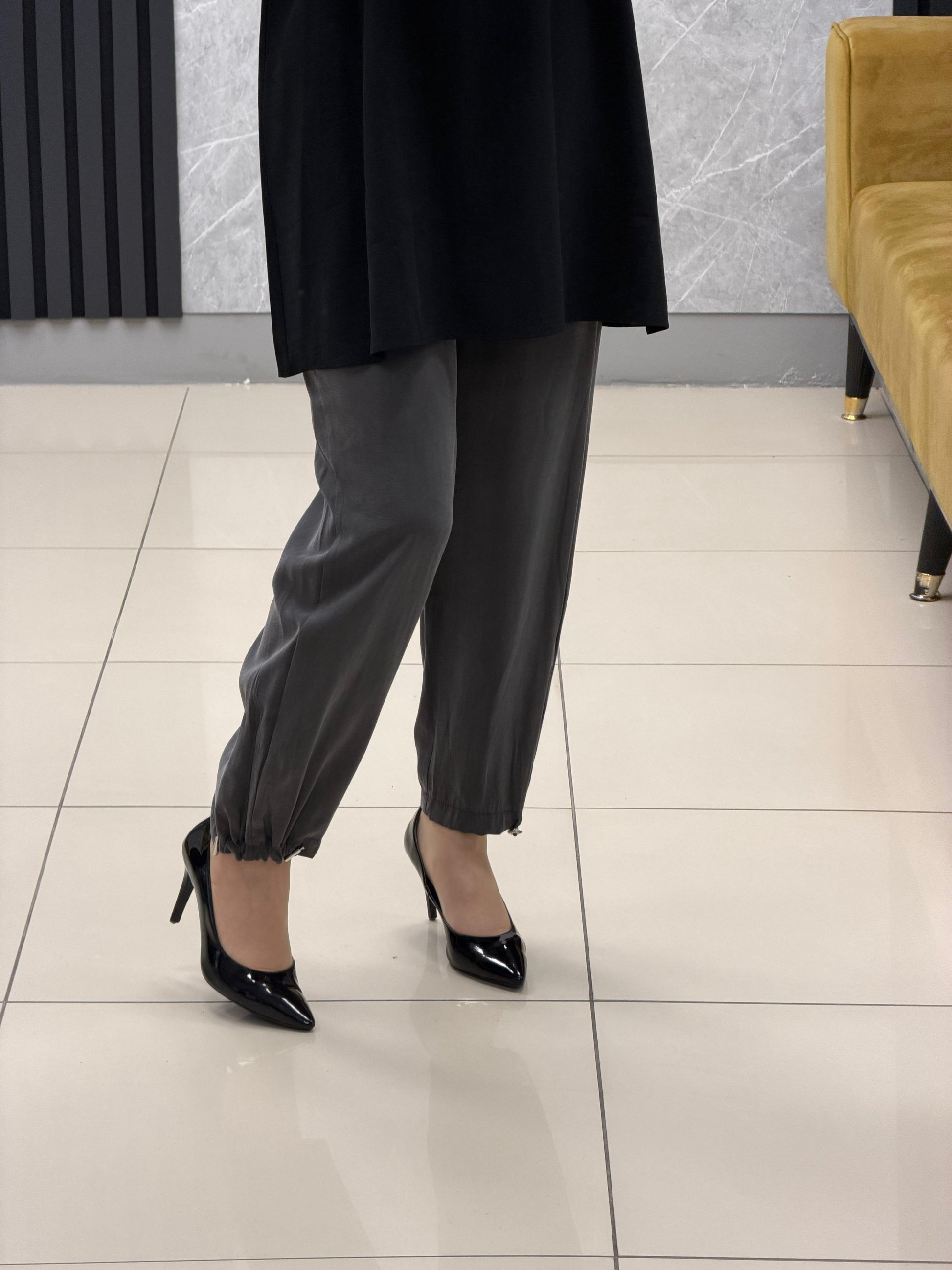 Noshe paçası lastikli ipek kupra pantolon 4640
