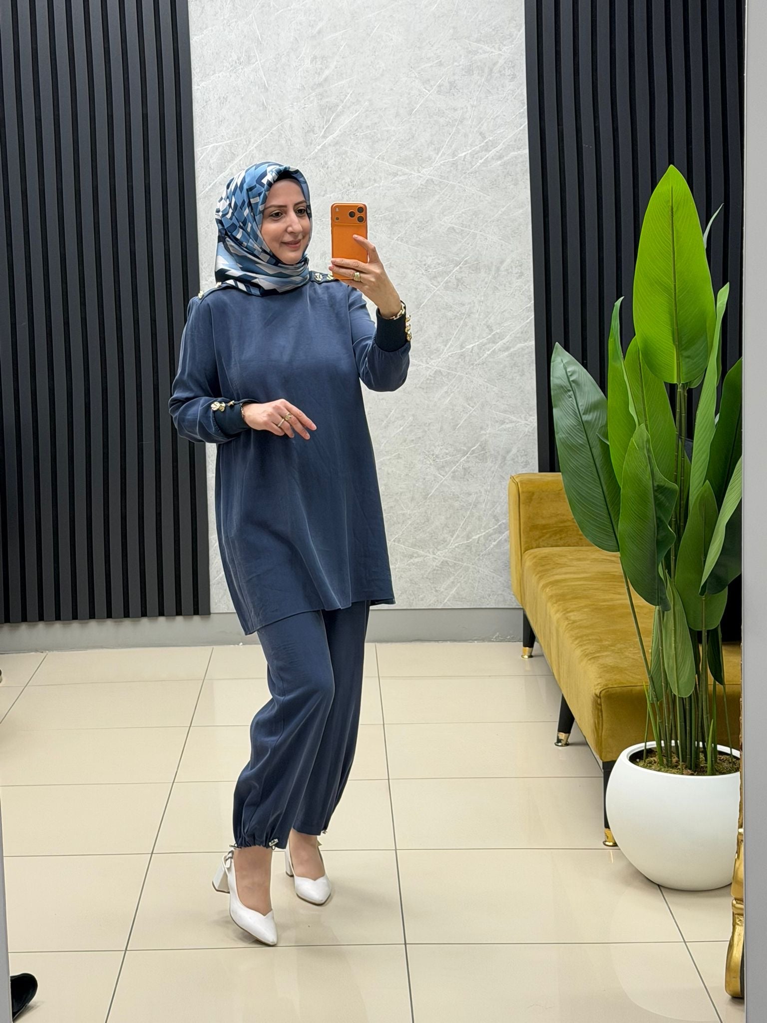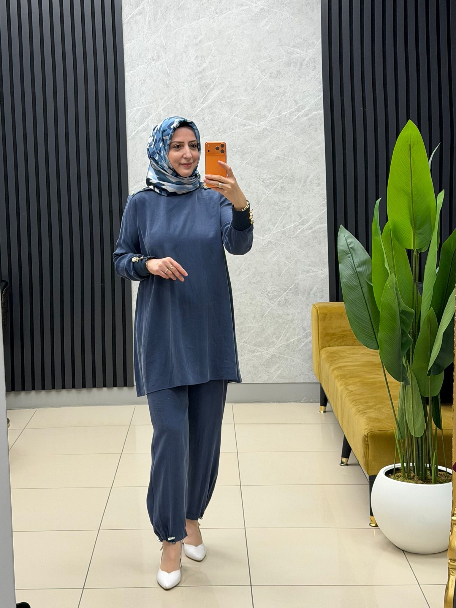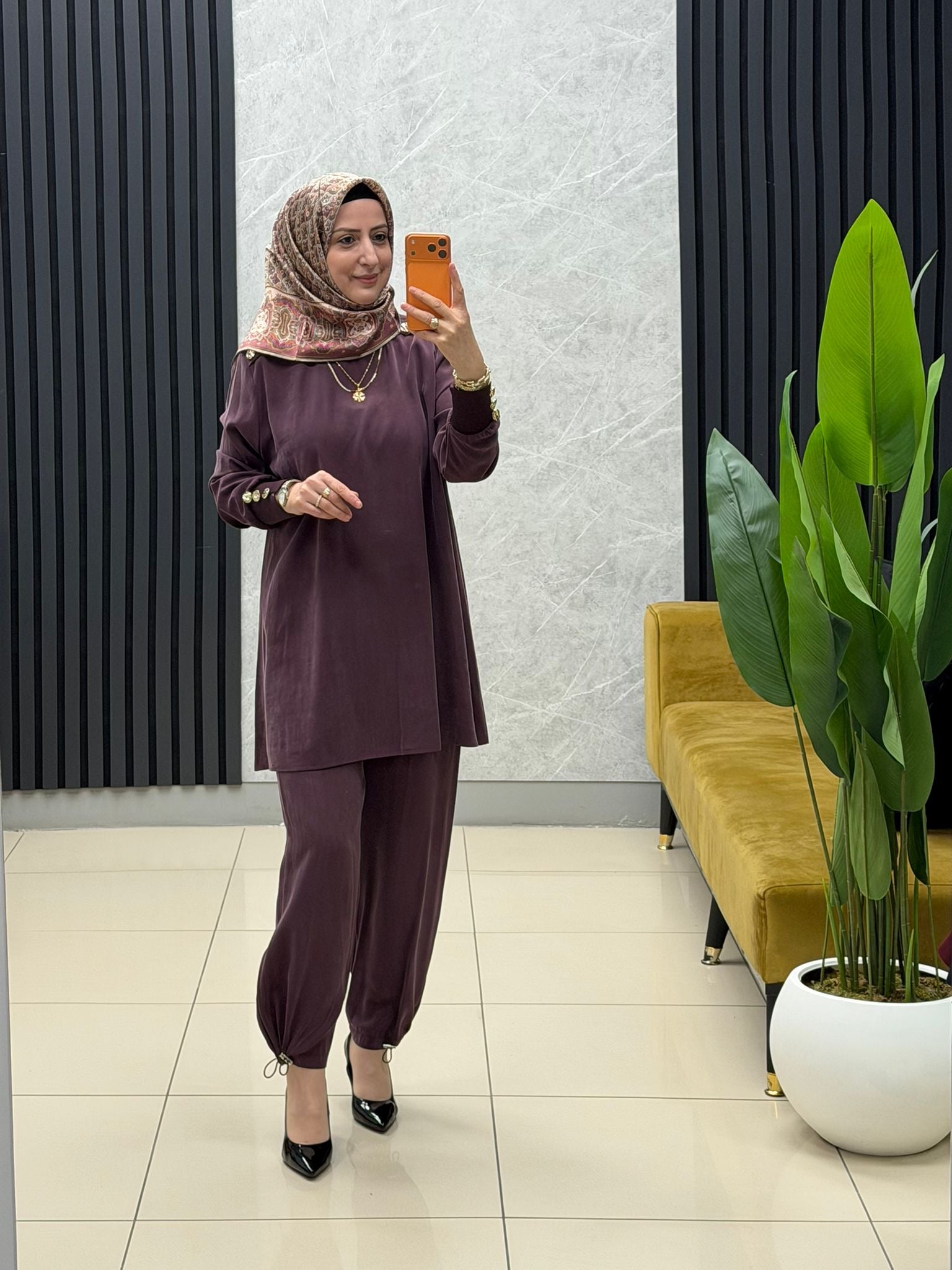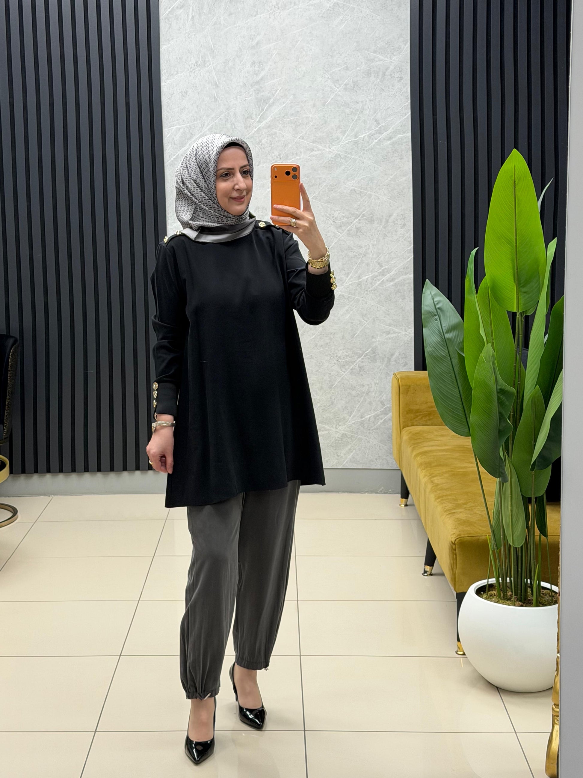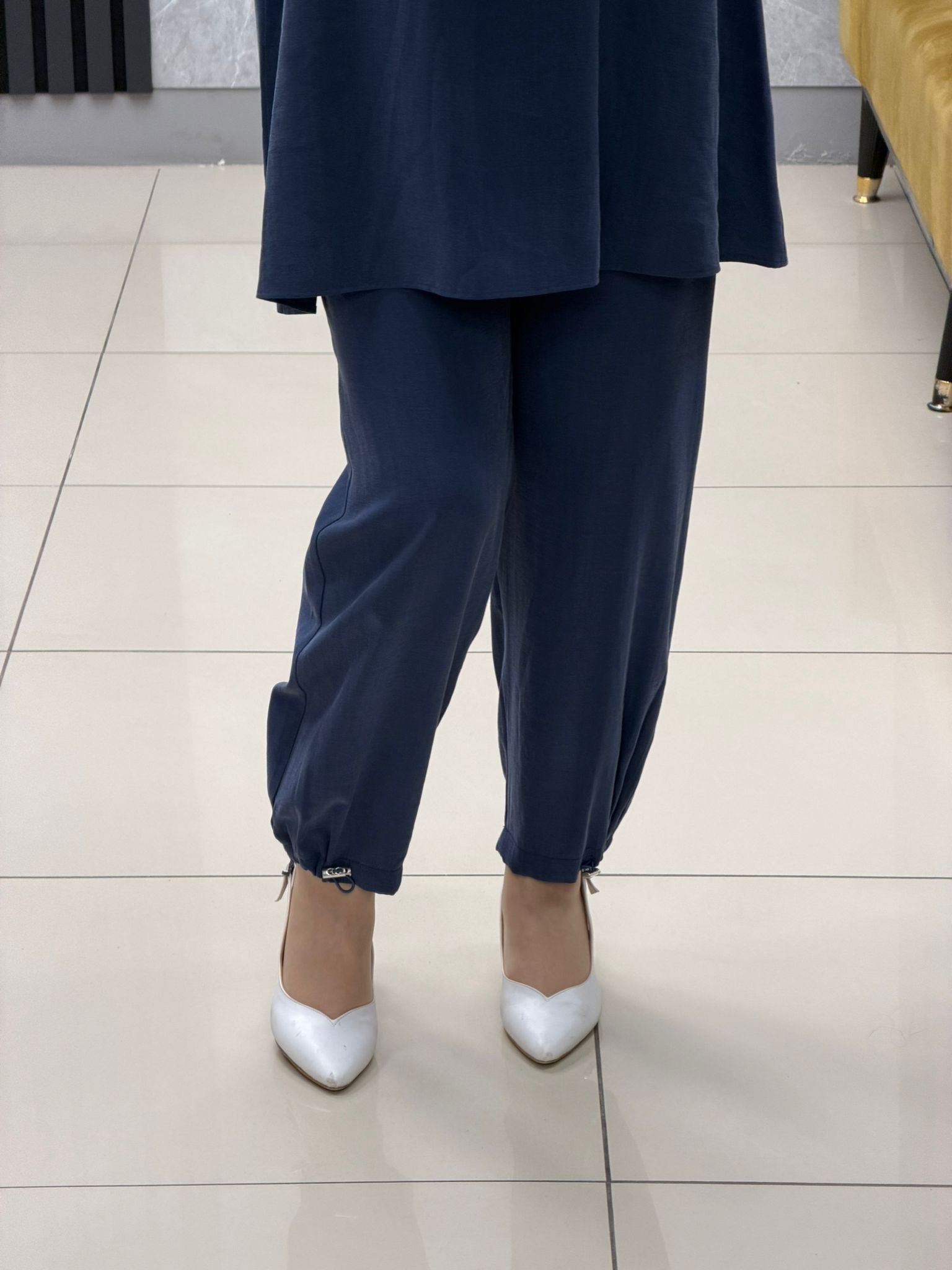 Noshe paçası lastikli ipek kupra pantolon 4640